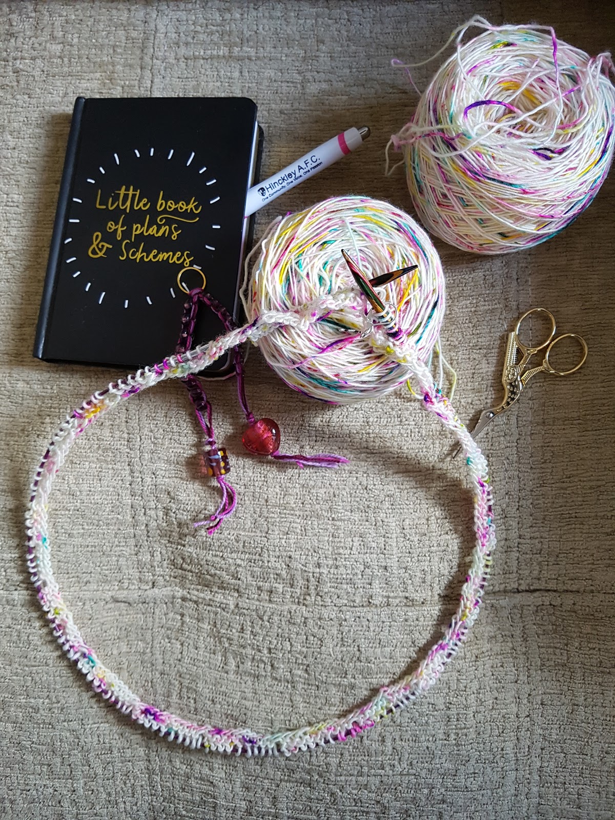 Talking to my best friend about this led us to form 'Wired Woollies' our own little social gathering where each week we share our news, gossip and moans over a table covered in colour. We met people wanting to learn and we taught them, celebrating each finished project and cooing over new yarns. As we got to know one another we learnt that we each had a reason to create, whether it was a way to challenge social anxiety, work our hands to cope with MS or to relax and make new friends; yarn pulled us together. We learnt that diagnosis or not everyones' mental health benefits from the gentle rhythm of a pattern or the distraction that a challenging pattern can bring. I began to want to share this with more people, to show the world it is OK to have bad days (where I shall vlog rather than write) and that one stitch, one beautiful colour palette or one proud reveal can help bring you back from the dark. We each have our own torch to light somehow, I hope I can pass you a match ♡♡